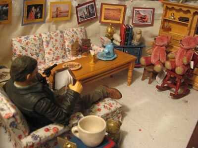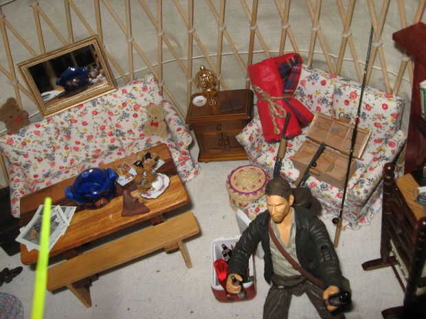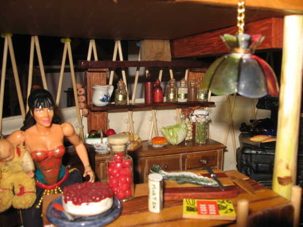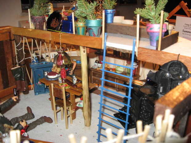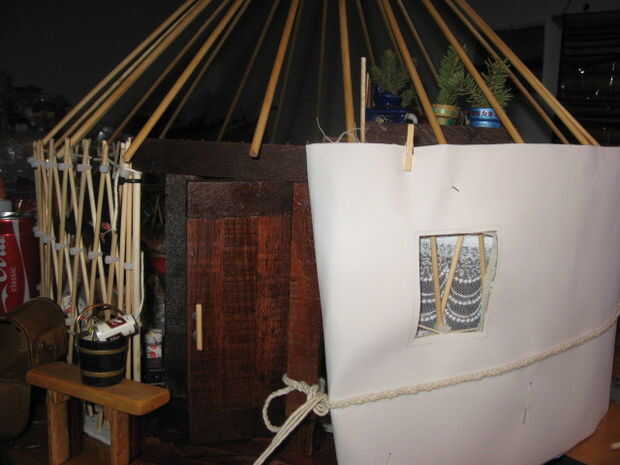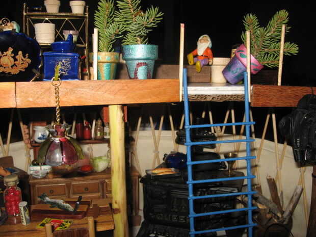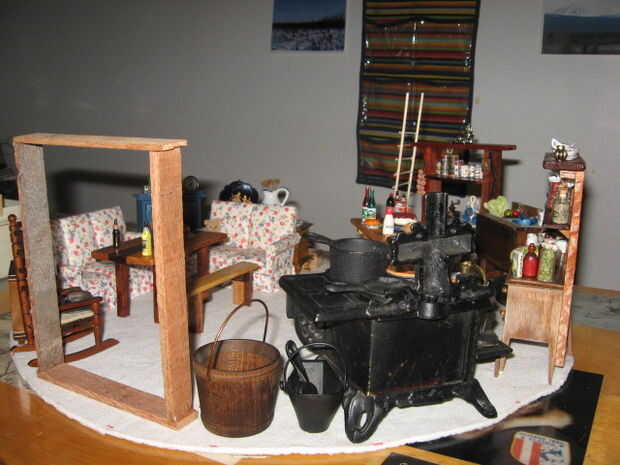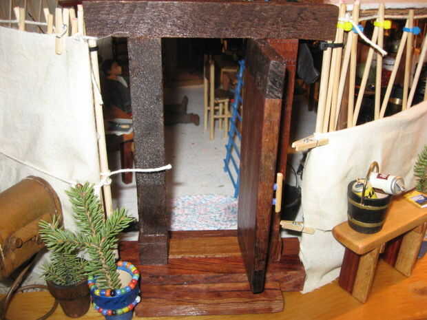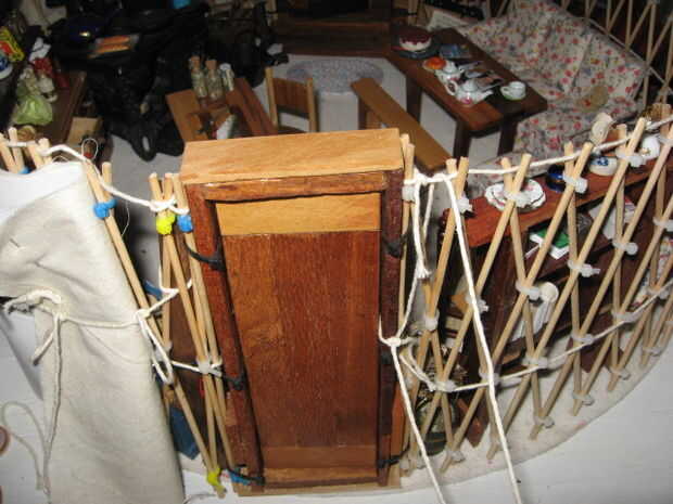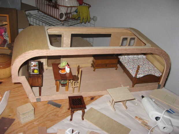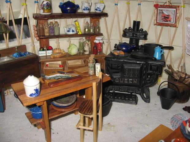 Para una comparación espacial y habitabilidad agregué una pulgada 16 1:12 escala norteamericanos y un 22 pulgadas 1:12 escala acoplado del recorrido a la pantalla de mi mini. La escena de basura de Trailer de Alaska fue un gran éxito con los locales, uno de los cuales nos había prestado su replica de Harley para la temporada. Es divertido ver cómo incluso crecido los hombres reaccionan a miniaturas y estoy reorgainizing mi casa gertee para tener el espacio para mantener el proyecto que durante todo el invierno. Aún no he terminado el tipi.