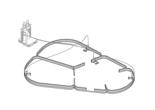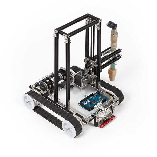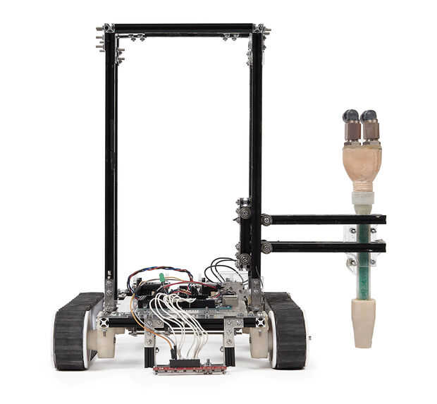 El robot base es móvil, con una CNC vertical subir la boquilla de Z, progresivamente mientras que el robot se mueve a lo largo de un camino predefinido. Esto crea una trayectoria espiral continua para la boquilla de colocación el material encima de cada capa previamente impreso.