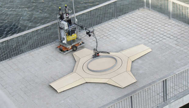 El primer robot, el Robot Base, se establece las primeras diez capas de material para crear una huella de la Fundación. Sensores instalados dentro de la dirección de control de robot, siguiendo un camino predefinido. Viajando en una trayectoria continua permite un actuador vertical ajustar progresivamente la altura de la boquilla para una suave y continua, espiral de la capa. La ventaja de poner el material en una espiral continua es que permite flujo constante del material, sin tener que