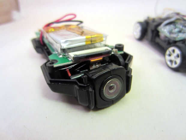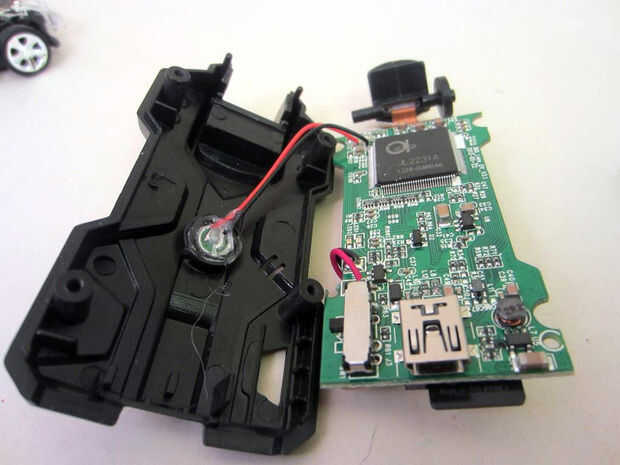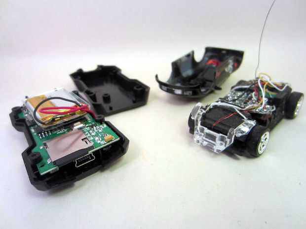 Utilice el destornillador para quitar los cuatro tornillos en la parte posterior de la 360 Panosphere y todos tres tornillos en la parte inferior del coche RC. Sacar la tapa del coche de RC y póngala a un lado. Retire la placa de "lógica" de Panosphere completamente de ambos lados de su cuerpo. Para hacer esto usted tendrá que extraer una pequeña cantidad de pegamento alrededor del micrófono. Puede hacer esto con tu uña o algún otro objeto pequeño, razonablemente fuerte. Batería de Panosphere a su tablero de la lógica del pegamento. A continuación, pegue la parte posterior del micrófono a la placa lógica, para fijarlo en su lugar.