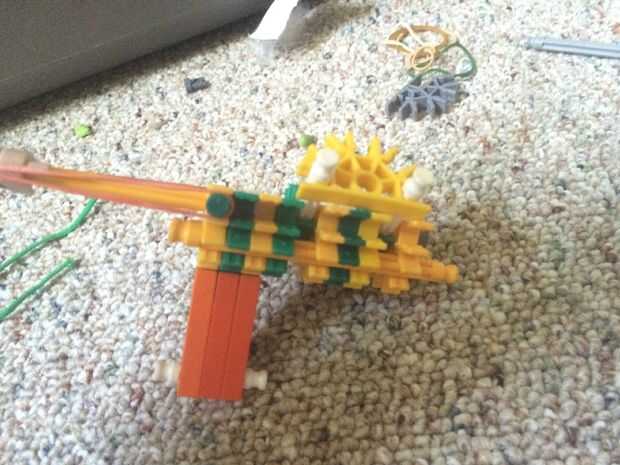 Añadir tres barras verdes a los conectores de la parte delantera tres. Coloque un conector naranja a todos ellos y coloque un conector blanco en la parte inferior.