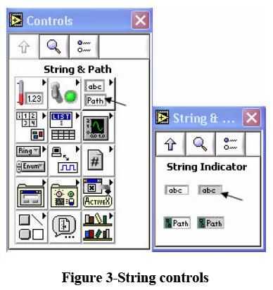 Para utilizar el control de Error, LabVIEW se lee de un conjunto de cadenas. El menú cadena y controles de ruta, como se muestra en la Fig 3, seleccionar indicador de cadena y etiquételo como mensaje de Error. Recuerde que esto es una ventana para mensajes de error relacionados con el estado del hardware.