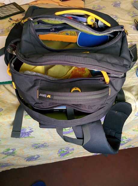 Mi laboratorio de electrónica mini (mochila) es bastante más ligero que puede llevar fácilmente durante la excursión. También puede usar un maletín o un agregado pero prefiero a mochila que queda muy cerca.