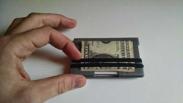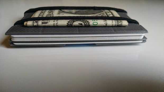 he sido fan de carteras minimalistas delgados de clip del dinero a las bandas de goma. Recientemente, mi novia Cindy creó una cartera minimalista de tamaños diferentes Liga específicamente para mis necesidades. Lamentablemente el proceso de creación