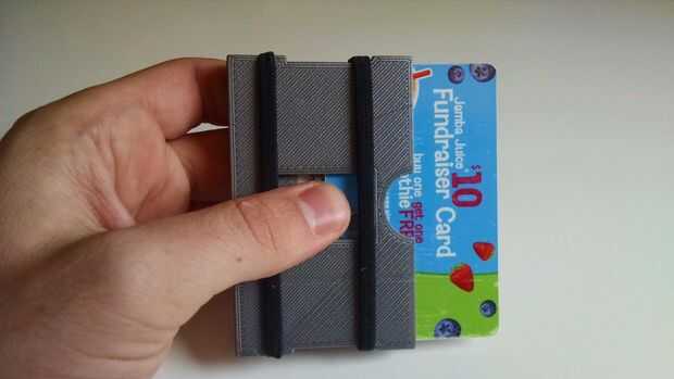 Diseñado para contener tarjetas de 4-6 y una pequeña cantidad de dinero en efectivo. Se trata de una cartera minimalista muy pequeña y compacta.Diseñé una billetera con intenciones de venderla en Kickstarter y pasó por muchas versiones en mi impresor