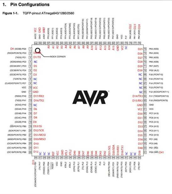 - 0.1uF derivación x 3, conectado en paralelo a 3 de los pares/AVCC VCC y GND (chip pins {31,32}, {61,62}, {99.100}).