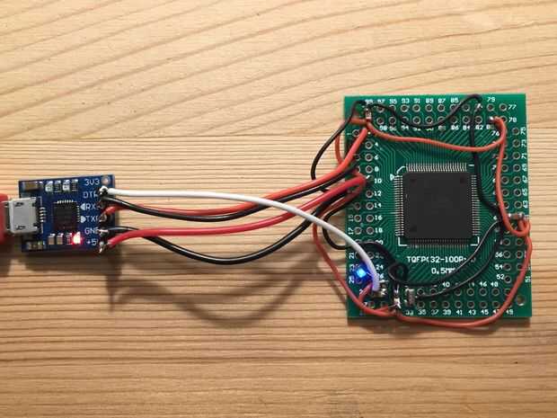 - ATmega2560 chip de un clon de Arduino Mega2560 (chip funcional y gestor de arranque) con una pistola de aire caliente, soldada a un desglose TQFP100 PCB.