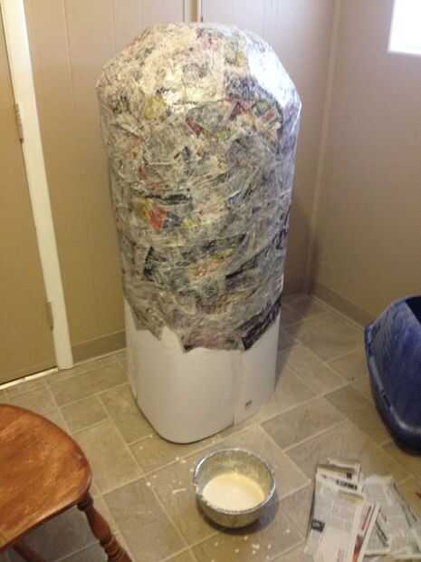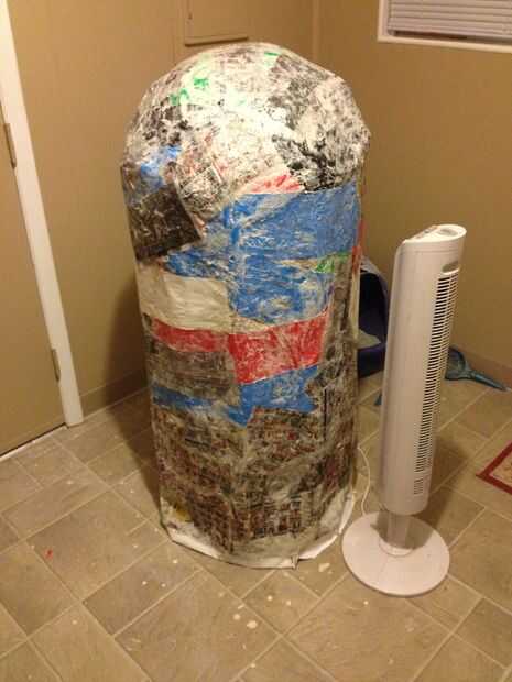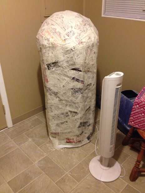 Cada capa después de eso, hice las tiras un poco más grande o más amplia. La última capa fue realmente gruesas tiras de cartulina para que sea realmente sólida. Un ventilador de torre oscilante hace maravillas, sobre todo cuando su espacio de trabajo está al lado de litterboxes de gato y los bichos quieren comer tu creación!
