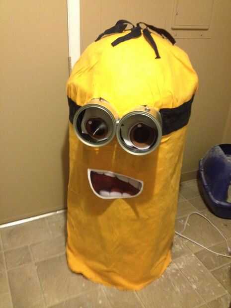 Examinar imágenes de sirvientes en la internet, y verás que el fondo es sólo una franja gruesa de color azul, con dos formas de caja en el centro en el frente y espalda, luego las correas de hombro. Cortar en fieltro azul (tratar de coincidir con los pantalones a usar en el día si se puede). Agregar las mangas resultó demasiado difícil. Subordinados deben tener mangas apretadas pero sabía que sería caliente dentro y quería algunos ventilación así que envuelve el mismo fieltro amarillo en largo formas de cilindro (medir su alcance desde los hombros a las muñecas) y los básicos desde el interior mientras pegado liberalmente. Las mangas parecen un poco goofy pero cuando los brazos están en ellos, se ven más naturales.