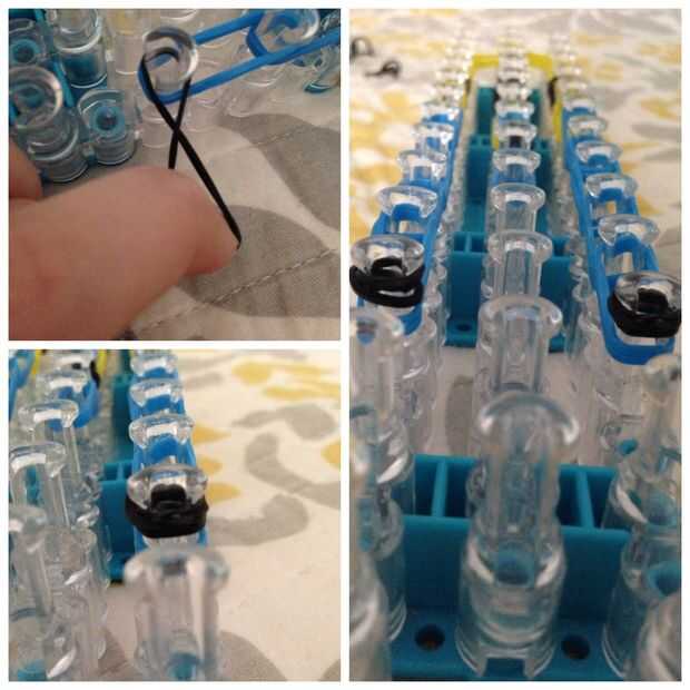 Minions de Gru también tienen zapatitos negros. Para hacerlas, envuelva una única banda negra alrededor de las clavijas a la izquierda y derecha tres 3 veces.