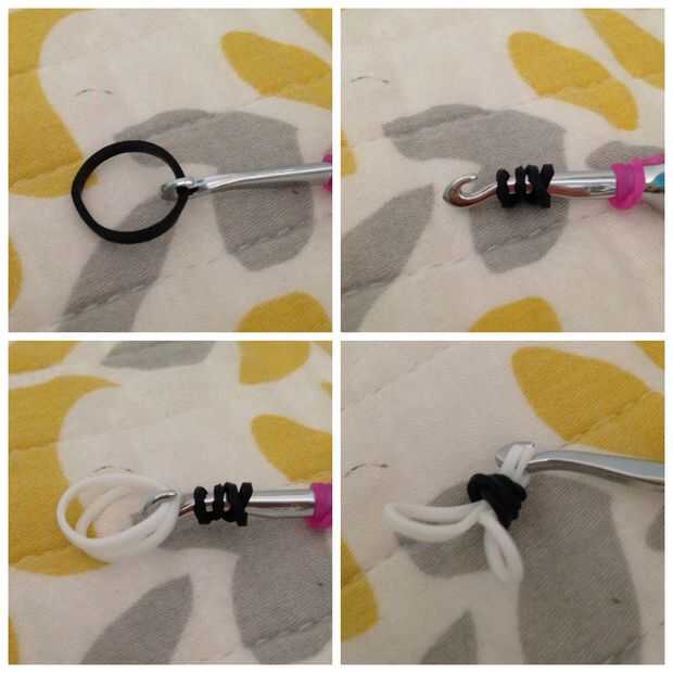 Esta parte es totalmente opcional. Envolver una banda negra alrededor de su gancho de cuatro 4 veces. Luego deslícelo sobre bandas blancas doble. Si no te gusta la apariencia, no añadir la banda de black.
