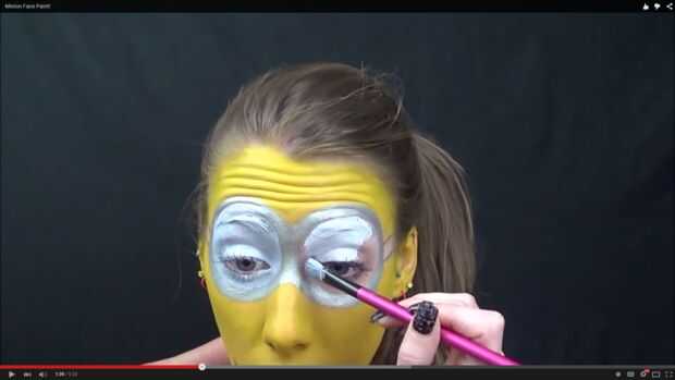 Primero utiliza plata de mi paleta Mehron metálico para delinear las gafas, solía blanco llene el interior, luego usé algunas sombras negras mate que para hacer algunos matices.