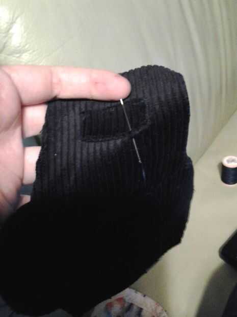 El pequeño bolsillo frontal limita girando cuidadosamente en los bordes, asegurando con puntadas pequeñas.
