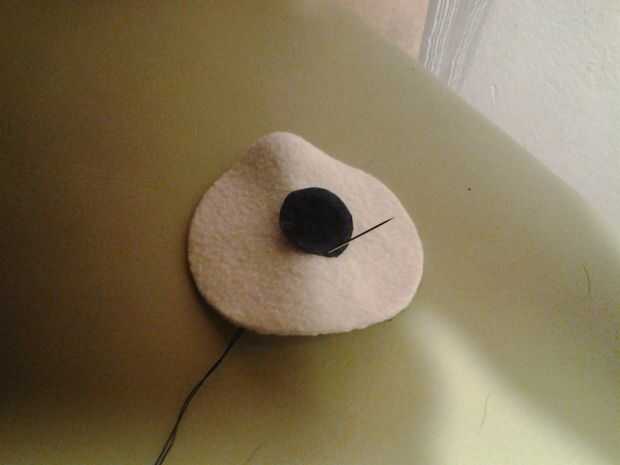 He utilizado esmalte de uñas sobre la parte negra del ojo y había cosido a la parte blanca grande.