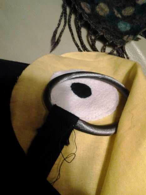 Coser cuidadosamente la cadena de cinta gris en un círculo de montaje alrededor del ojo.