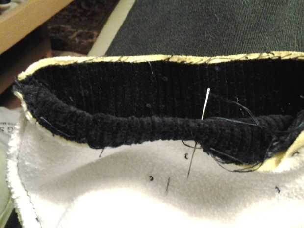 Todo lo que queda por hacer ahora es enrollamiento en el borde inferior del guante de su súbdito y coser, así que tiene un bonito ribete en la parte inferior.
