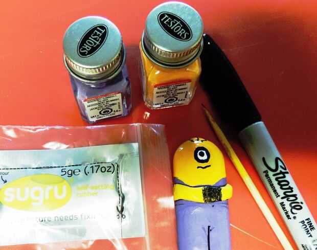 Minion: En el caso de esbirro utilicé pinturas Testor en amarillo y morado.