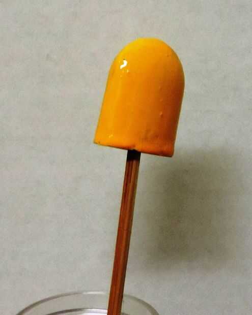 Las correas no eran lo suficientemente limpia para mí y usé la punta de la brocheta sumergido en la pintura amarilla y arreglado por las correas.