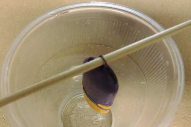 El pincho se utiliza para sostener la parte inferior mientras se seca. He roscado el pincho a través de la unidad de salto y entonces lo descansaba en el borde de un vaso de plástico.