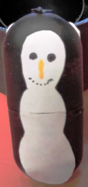 La misma pintura que se utilizó para su nariz de zanahoria y el marcador fue utilizado para sus funciones.