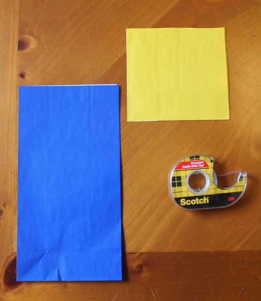 El primer paso va a ser hacer tus bolsas de amarillo por la mitad. Estos hará que la parte superior la mitad de sus bolsos de súbdito. No tengo fotos de este paso, así que voy a describir lo mejor que pueda. La forma más fácil que encontré para hacer esto fue la bolsa sin abrir y doblar de arriba hacia abajo, escuadrado final superior (apertura) con el extremo inferior. Hacer un pliegue y luego corte a lo largo de la línea de pliegue con sus tijeras. Puedes ver lo que esto se debe ver como en la foto. Puede descartar la parte inferior la mitad del amarillo bolsa o usarlo para otro proyecto. Mi hijo disfrutado para colorear en éstas y añadiendo etiquetas a ellos.