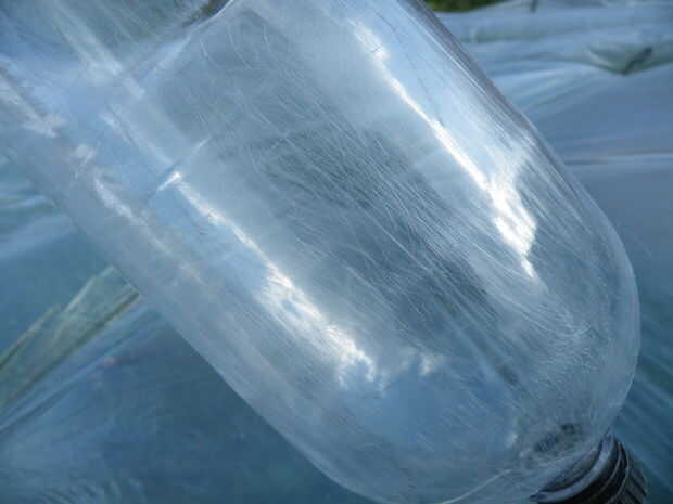 Había rascado sólo ligeramente la superficie de las botellas con papel de lija.