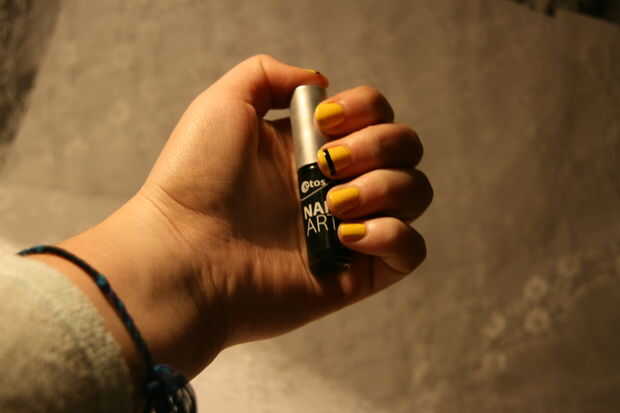 sólo para los amantes del súbdito como yo!;)Paso 1: Se necesita Capa de baseUñas amarillasAzul, blanco y negro acrílico colorStriperHerramienta de punteadoCapa superior dePaso 2: Aplicar una capa Base Es la capa de base aplicando paso aEvitar que las