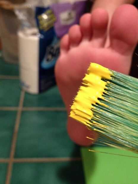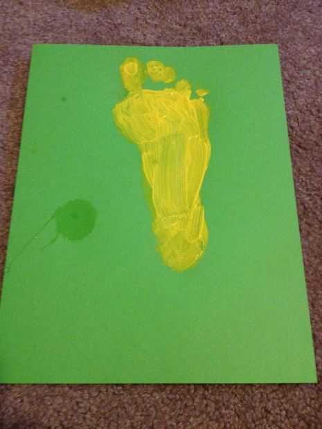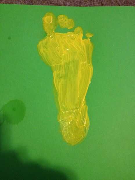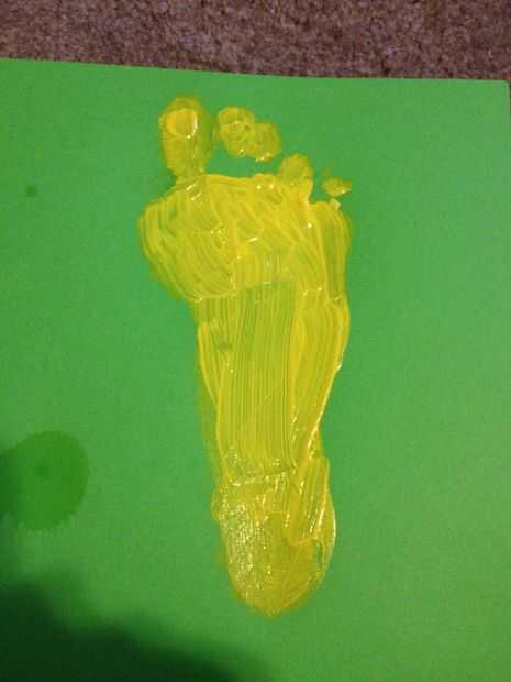 Pero, en serio. Solo pintar el pie y presione sobre un pedazo de cartulina. Elegí el verde, es solo mi Consejo y ADVERTENCIA: no usar azul o amarillo. Bueno, de hecho. Seguir, mis súbditos.