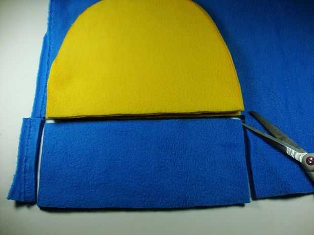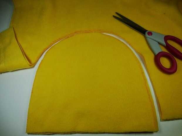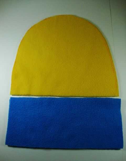 Hat: Puede descargar el patrón en el paso anterior para obtener la forma general del sombrero. Sólo asegúrese de que está alrededor de 11 1/2 pulgadas a lo largo de la parte inferior y 8 1/2 pulgadas de alto. Recorte esta parte en el amarillo.