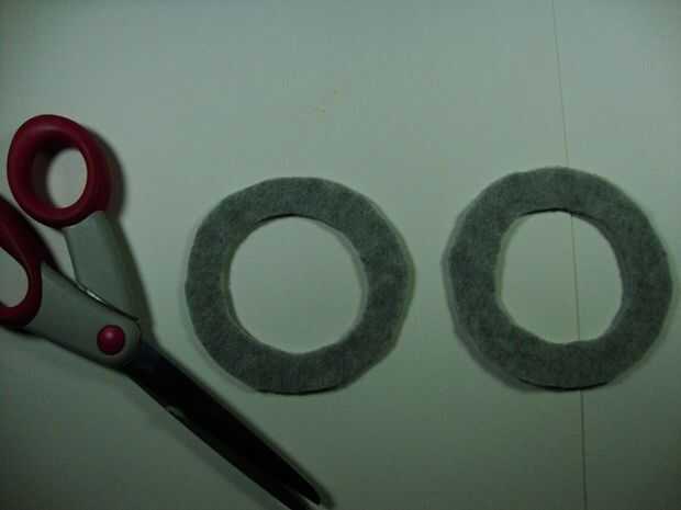 Gafas: Corte alrededor de la mitad una pulgada más grande que el blanco, todo el camino alrededor. Luego corte el centro del círculo.