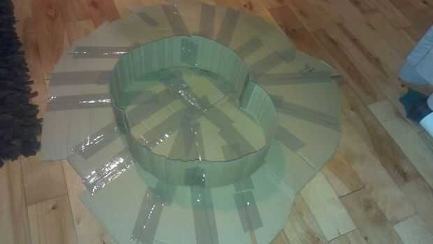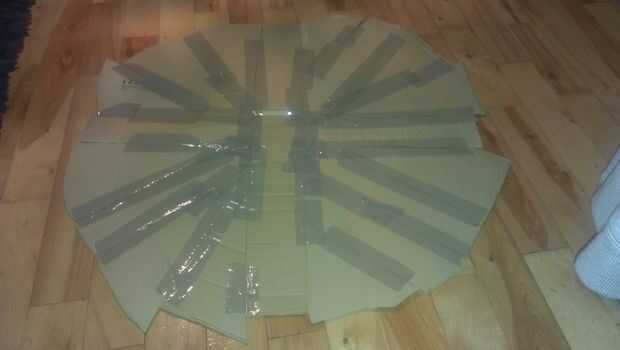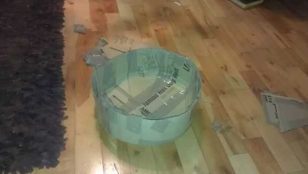 Un anillo de cartón fue hecho de un pedazo largo al diámetro que requiere, entonces mi círculo fue empujado en él. El exceso se pegue hacia fuera fue quitado y asegurado otra vez por la cinta en el anillo exterior.