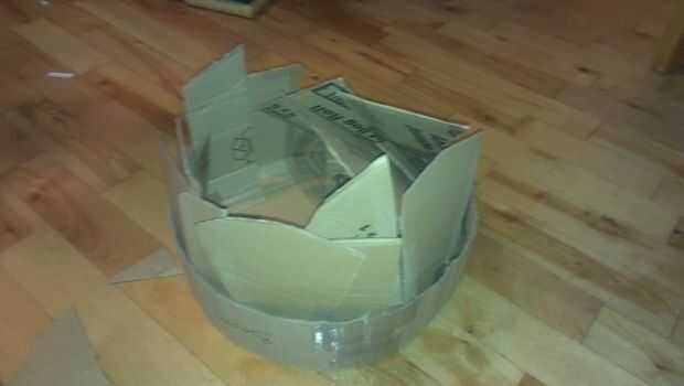 Mi primer problema fue crear la parte superior de la cabeza para el súbdito. Como tenía mucho que decidí probar y crear la parte superior con tiras por la cinta hasta para formar un círculo de cartón.
