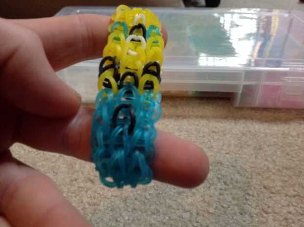 este patrón es muy fácil creo. Básicamente sólo repite sí mismo. Su un poco más gruesa que la pulsera de telar solo arco iris.Usted necesitará• arco iris telar (o cualquier otro telar)• gomas• un gancho• C-clip o pinza S(Quizá quieras tenerlo en una