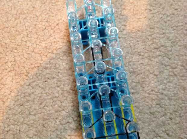 este patrón es muy fácil creo. Básicamente sólo repite sí mismo. Su un poco más gruesa que la pulsera de telar solo arco iris.Usted necesitará• arco iris telar (o cualquier otro telar)• gomas• un gancho• C-clip o pinza S(Quizá quieras tenerlo en una