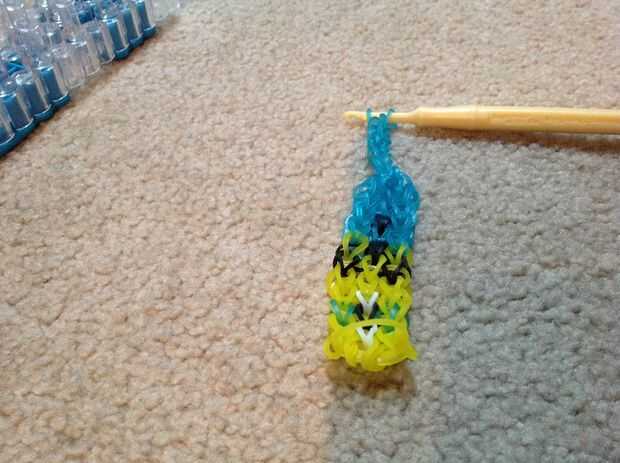 este patrón es muy fácil creo. Básicamente sólo repite sí mismo. Su un poco más gruesa que la pulsera de telar solo arco iris.Usted necesitará• arco iris telar (o cualquier otro telar)• gomas• un gancho• C-clip o pinza S(Quizá quieras tenerlo en una