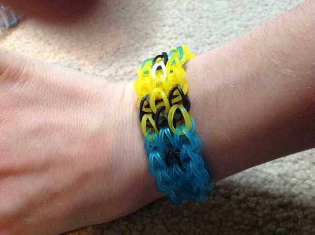 llame esta pulsera cascada porque me recuerda que fluye agua. Mayoría de la gente sabe esta pulsera como un solo triple. Es bastante simple.Paso 1: materiales Necesita1) dos o tres diferentes bandas de goma de color2) gancho de3) telar * imitaciones