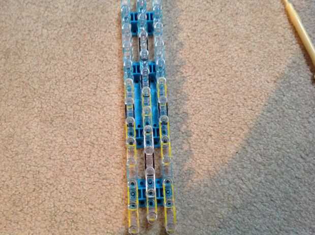 este patrón es muy fácil creo. Básicamente sólo repite sí mismo. Su un poco más gruesa que la pulsera de telar solo arco iris.Usted necesitará• arco iris telar (o cualquier otro telar)• gomas• un gancho• C-clip o pinza S(Quizá quieras tenerlo en una