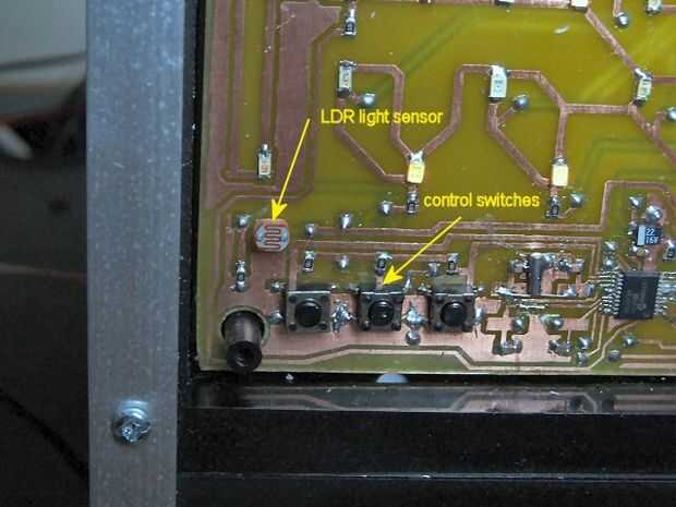 Ya moví los interruptores en la parte delantera, ahorra jugueteaban alrededor de la parte posterior del reloj después de salidas de energía para restablecer el tiempo y ahora todo es un único PCB... ningún cableado cuestiones.