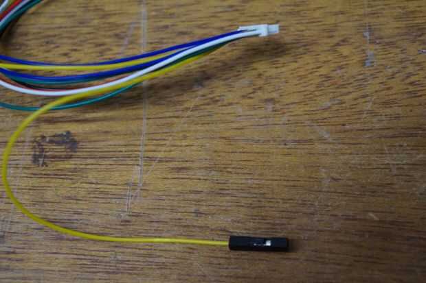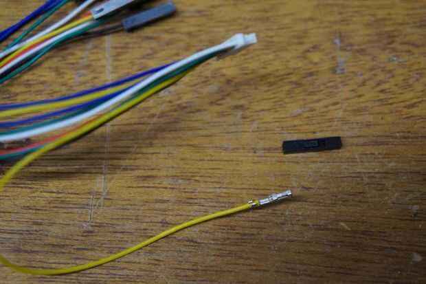 Desembale el otro cable de la posición 10 de mini bolso del Ardupilot. Se puede utilizar un bisturí / x-acto cuchillo para levantar para arriba la pestaña de la clavija del cable más cercano al cable rojo y sacar el enchufe del extremo del alambre de metal. Ver las fotos. Deslice el cable en la ranura libre en el enchufe de Mobius si tienes uno.