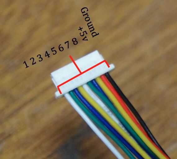 Ahora Conecte los cables del receptor. El enchufe de la Mobius es canal 8, el cable rojo puede ir en cualquier perno de la energía (fila del centro) y el negro de alambre en cualquier conector de tierra (fila inferior). Trabajar su camino desde el cable rojo y conectar cada alambre a lo largo de la fila superior (señal) en orden descendente. El alambre más alejado el cable rojo es el canal 1.