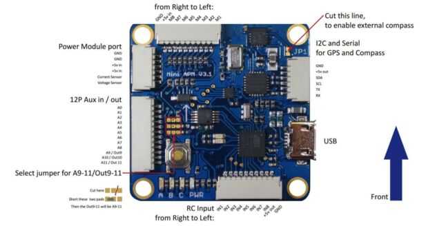 Puede ahora todo enchufe el controlador de vuelo según este diagrama y encontrar un lugar para pegar todo. Enchufe la PDB en el Ardupilot, GPS, telemetría, CES y receptor RC.