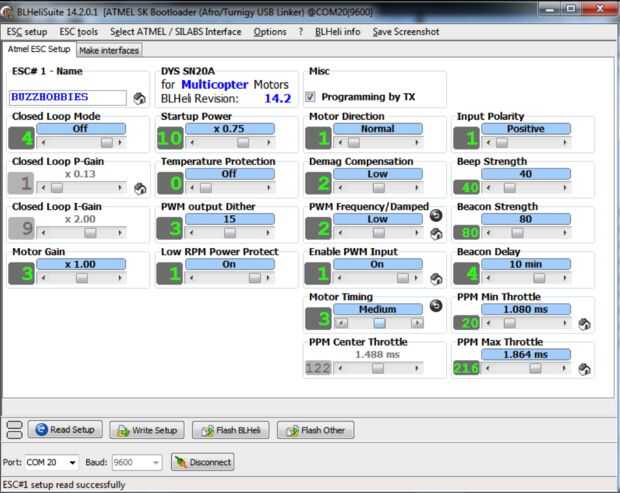 Leer cada ESC setup y cambiar manualmente los valores en lugar de escribir ciegamente la misma configuración a cada uno, como la dirección del motor puede ser diferente.