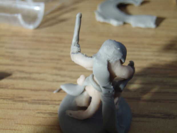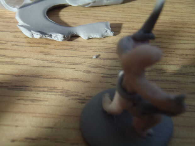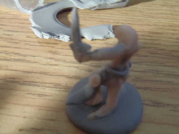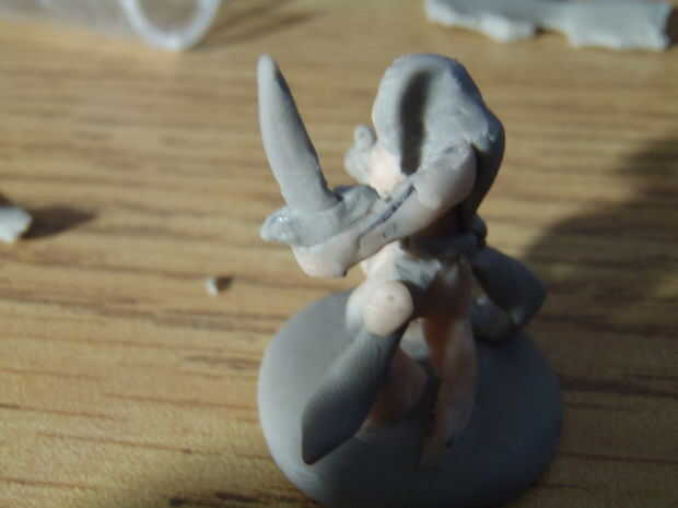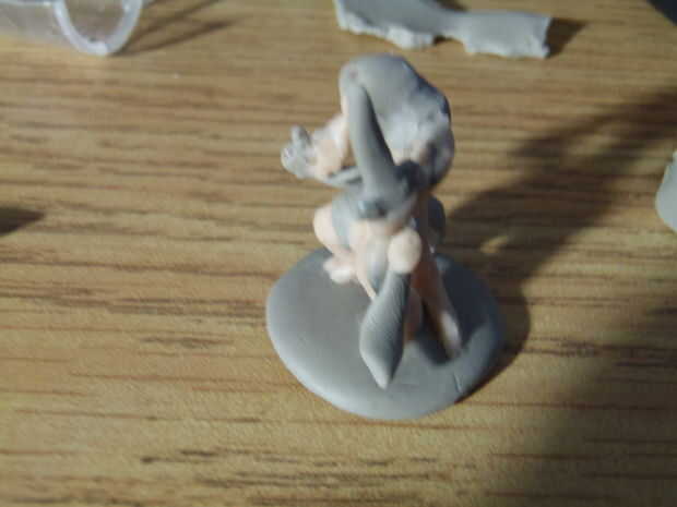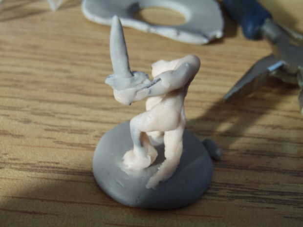 4. Añadir ropa, armaduras, etc.. Tiendo a hacer esto trabajando la armadura y ropa en mis manos y luego lentamente los bordes en el resto de la arcilla utilizando el borde plano de la herramienta. Esto funciona mejor cuando se combinan dos piezas que se hacen de sculpey normal o uno de cada uno. Sculpey firme es mucho más difícil y le cand uso regular sculpey como agente vinculante entre ellos y sobre los bordes ya que usted va ser pintando después de todos modos no tienes que preocuparse por la diferencia de material o color, una vez que están cocidos y pintados, a debe ser bastante transparente.