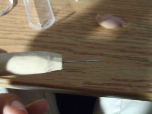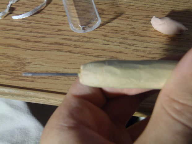 5. Haga una última revisión antes de hornear el cable es por lo menos bajo un poco de arcilla. A menudo todavía se puede ver a través de sculpey normal debido a su ligera transparencia y todavía puede cubrir el alambre con pintura, pero es mejor mantenerlo más centrado posible en la arcilla.