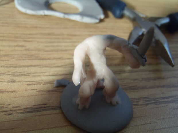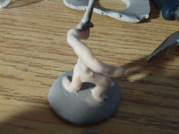 1. Inicie poniendo algunos sculpey en las articulaciones y el torso para fijar el cable en su lugar. Sculpey super regular funciona mejor aquí, pero usted puede hacerlo con la firma una así.