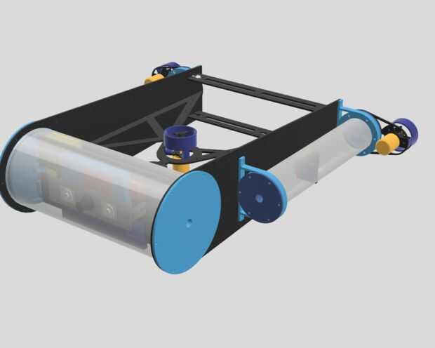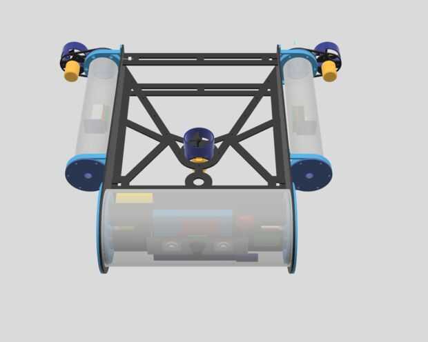 Idealmente, el ROV sería neutral boyante como para necesitar empuje mínimo para moverse a través del agua. Hay tres tubos principales que contienen aire que aumentan la flotabilidad y (además del peso del vehículo) dos piezas de acero inoxidable para lastre. Diseñé esta versión para uso en agua dulce, por lo que el lastre adicional sería necesaria para un ambiente de agua salada.