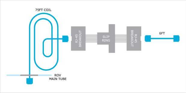 La bobina de sujeción proporciona una base ponderada para el anclaje y permite el ROV tirar libremente de sí mismo a lo largo. Tiene un anillo de deslizamiento en el centro para permitir el continuo cabestrante y una rueda dentada para retracción fácil. La correa sí mismo es cable de red de plenum Cat 5e. Es clasificado para un poco extra y desgaste, que es importante para este tipo de uso. La el montaje de carrete consiste en madera de la capa de corte por láser que se sujeta con un puñado de tuercas y tornillos.