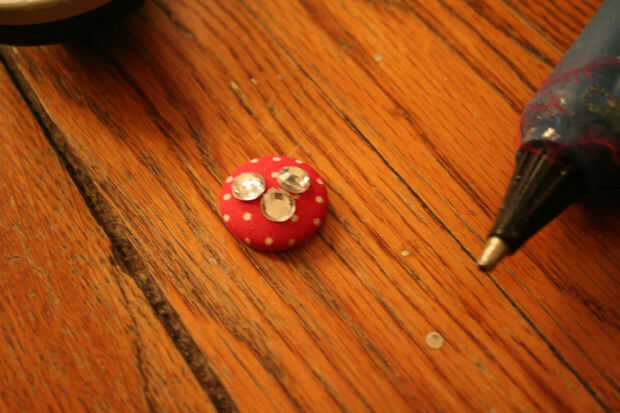 Ahora, toma algunos rhinestones y montar en la forma de una cabeza de Mickey Mouse sobre el botón.