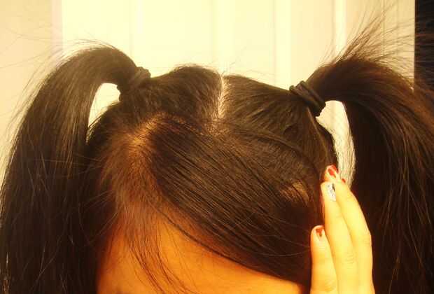 Luego atar en dos coletas altas.