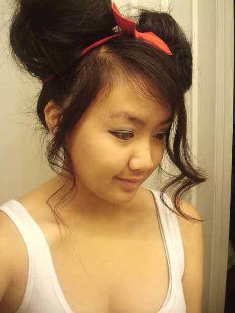 A partir de una coleta, tome un mechón y rocíe con spray de cabello luego tease (peine trasero). seguir haciéndolo hasta que hay un nido de pájaro gigante a cada lado de la cabeza. peinar suavemente la superficie de este nido de pájaro y entonces pruébalo a forma una bola y la horquilla hacia abajo firmemente. continuar hasta satisfecho. Esto lleva tiempo conseguirlo práctica derecha así unas cuantas veces antes de la gran noche.